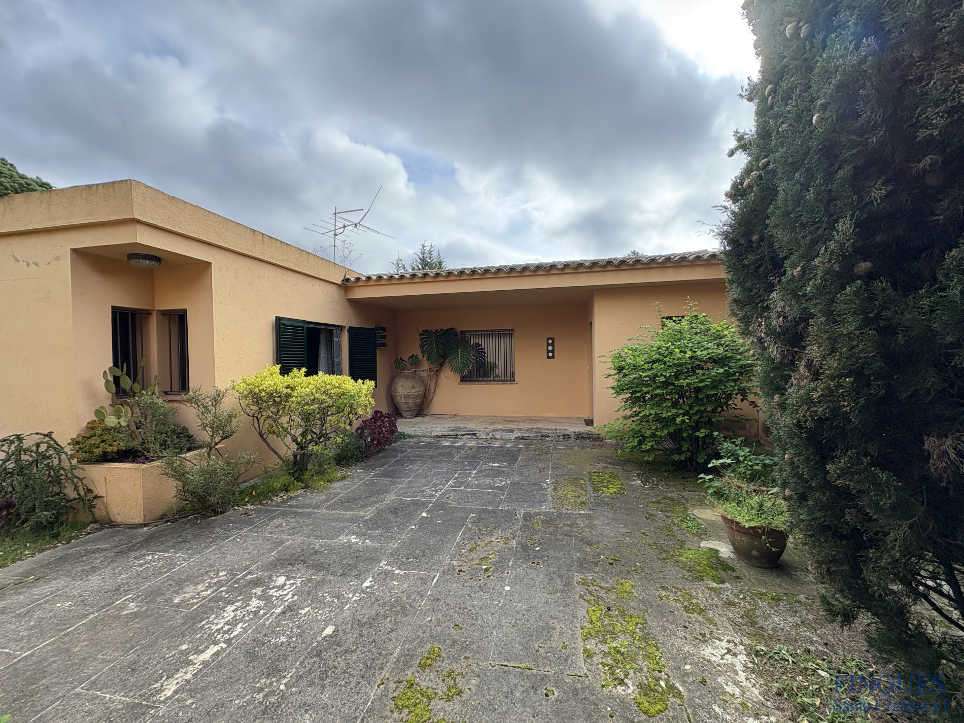 Santa Cristina d'Aro, al centre de la població, al barri de l'Església. Finca de 4.995 m2 tot plans. L'edificació va ser dissenyada pel prestigiós arquitecte català Josep Pratsmarsó. La casa va ser dissenyada amb un estil modern amb grans obertures per aprofitar al màxim el sol, per la seva orientació ho rep durant totes les hores del dia tant a l'hivern com a l'estiu. Tota en una sola planta, Compta amb àmplies estades, 3 habitacions amb bany en cadascuna d'elles, habitació saló, un lavabo de cortesia, Àmplia cuina, quart safareig, celler, garatge per a dos cotxes. Espaiós menjador, gran saló amb llar de foc i amplis finestrals amb sortida als porxos coberts, amb magnifiques vistes a l'església i nucli antic de Santa Cristina d'Aro. El jardí totalment pla amb diferents espais per al cultiu de fruiters i vinya, compta amb una piscina i una edificació auxiliar amb porxo.