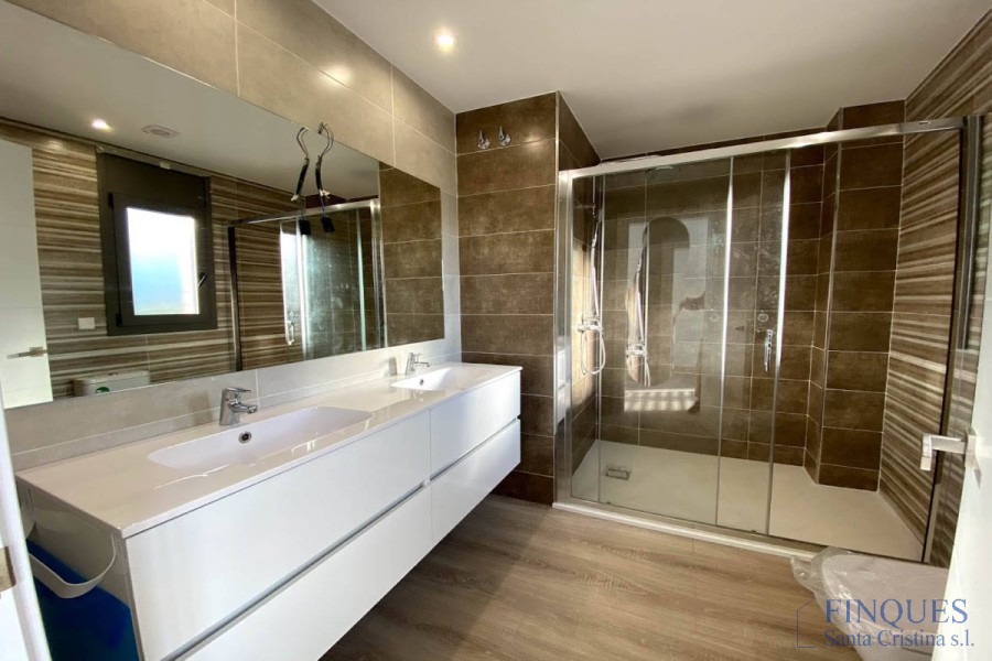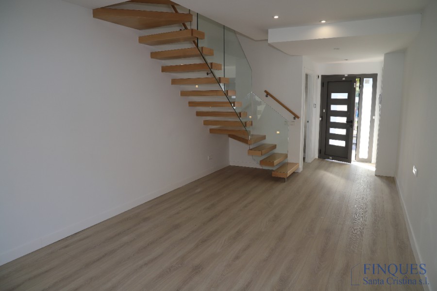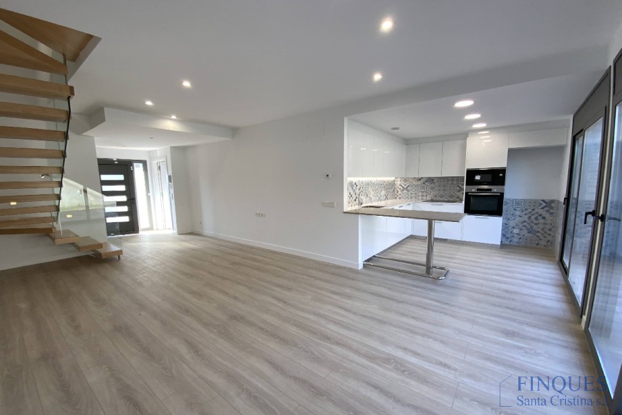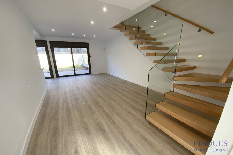Santa Cristina d'Aro, Center. New Promotion of semi-detached houses with high quality finishes and maximum energy efficiency letter A. Each home includes a complete aerothermal air conditioning system that uses the energy of the outside air to generate heat and heat the home with notable energy savings and a significant reduction in polluting gas emissions. This system is complemented by the installation of photovoltaic panels that produce their own energy and guarantee an autonomous energy supply. It also has air conditioning devices to cool all areas of the home. It has a large living room with access to the terrace and garden, a kitchen that has integrated appliances, a large storage capacity and a countertop in the kitchen that gives you more space to work. Three bedrooms, one of them a suite with a built-in dressing room and two full bathrooms. The property has a ventilated space at the height of the garden to place all the devices for the aerothermal and air conditioning installation. This type of housing stands out for its commitment to sustainability and energy efficiency that offers an environmentally friendly living environment, a great example for a more sustainable future.
