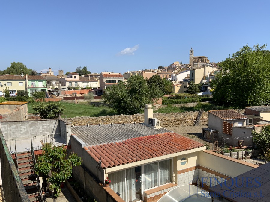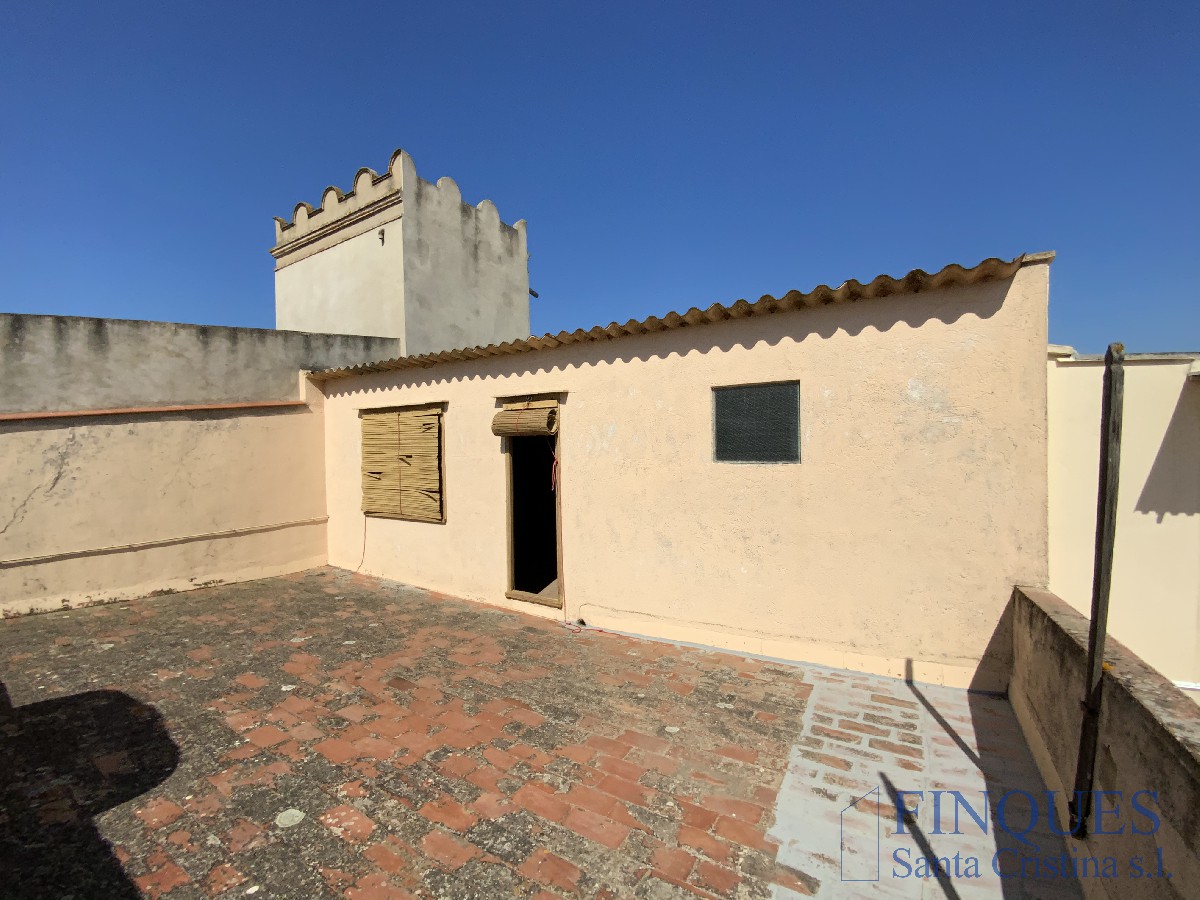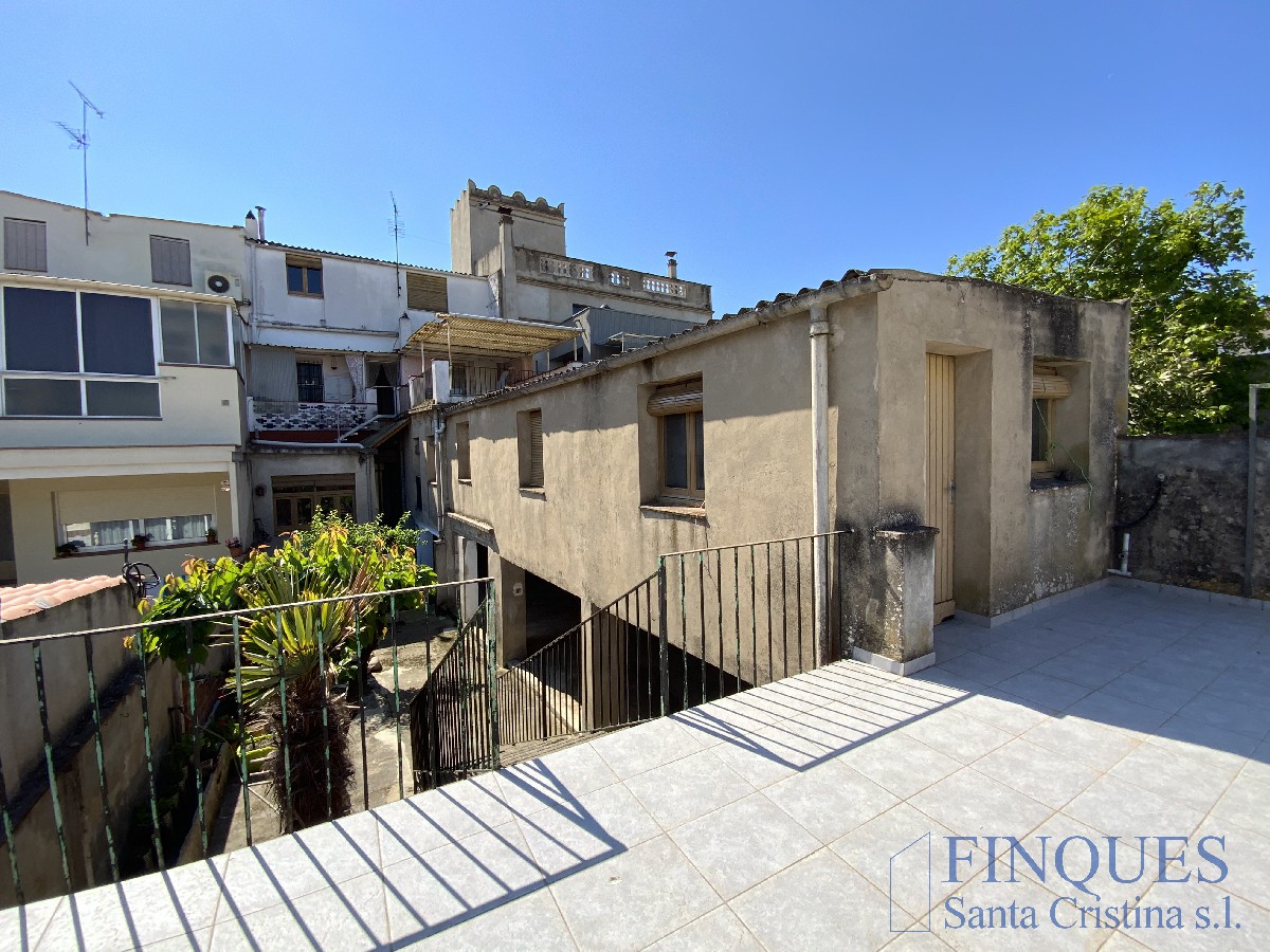 Llagostera, zona Centro, Casa adosada con fachada antigua. Casa distribuida en tres plantes.la planta baja consta de un gran espacio destinado, en estos momento, a local comercial con una vivienda de dos habitaciones, cocina comedor, baño cumpleto patio con lavadero, almacenes cubiertos con acceso a sótano. La planta principal cuenta de una vivienda con tres habitaciones, cocina, comedor, baño cumpleto y una amplia terraza con lavadero. La planta segunda consta de un estudio-solárium con dos habitaciones más ventanas exteriores y una gran terraza muy soleada. La finca se encuentra en una muy buena ubicación cerca del mercado municipal y de una zona de aparcamiento gratuito. Dispone de calefacción y gas natural.