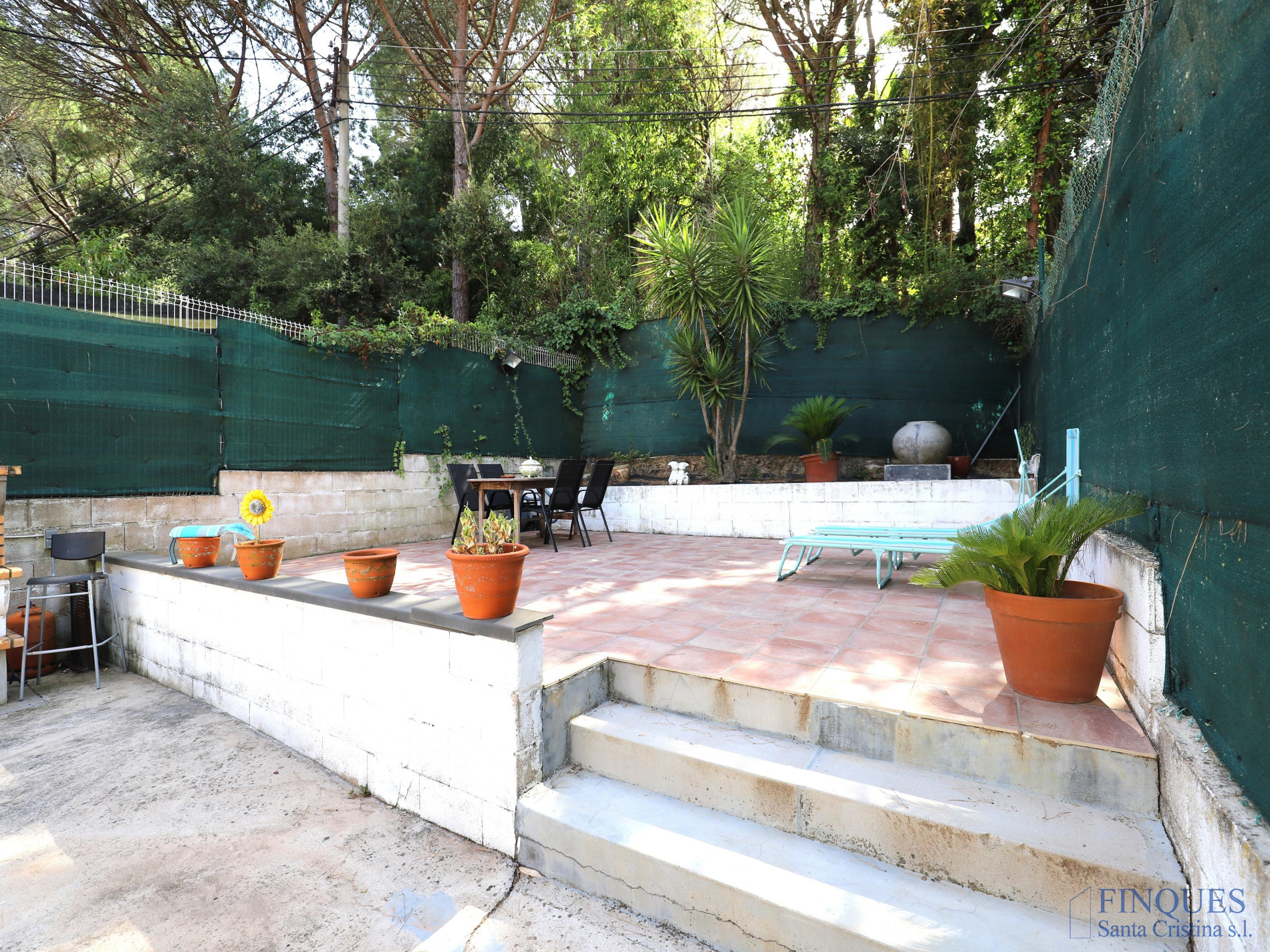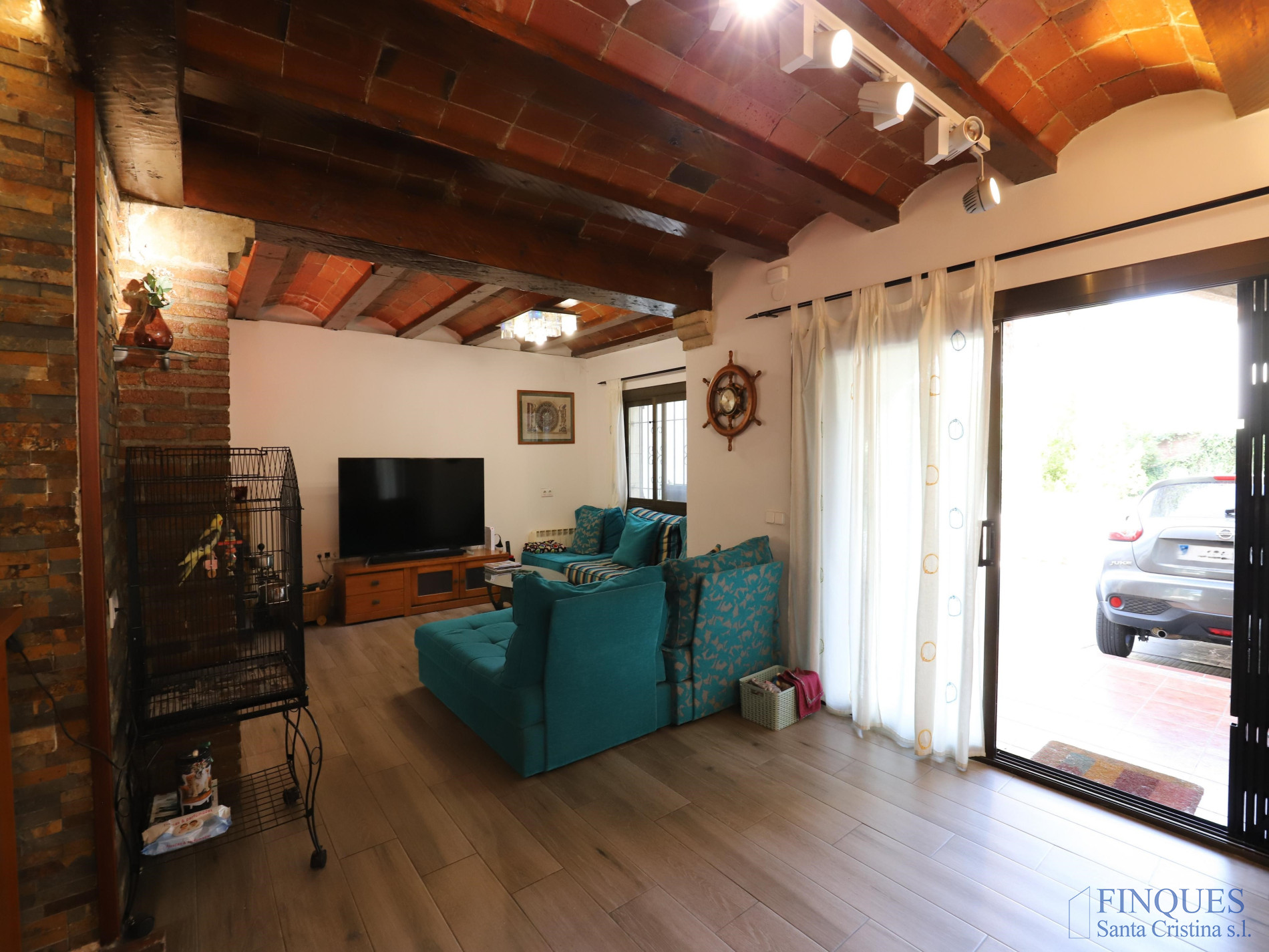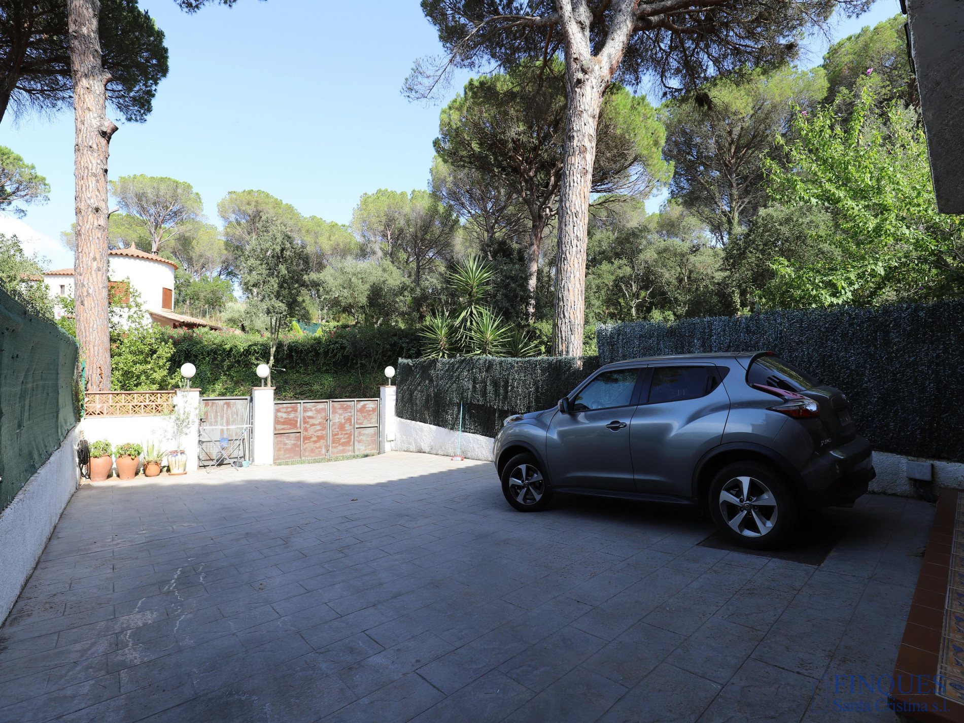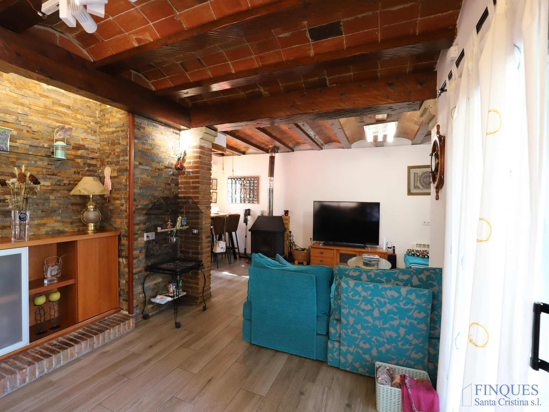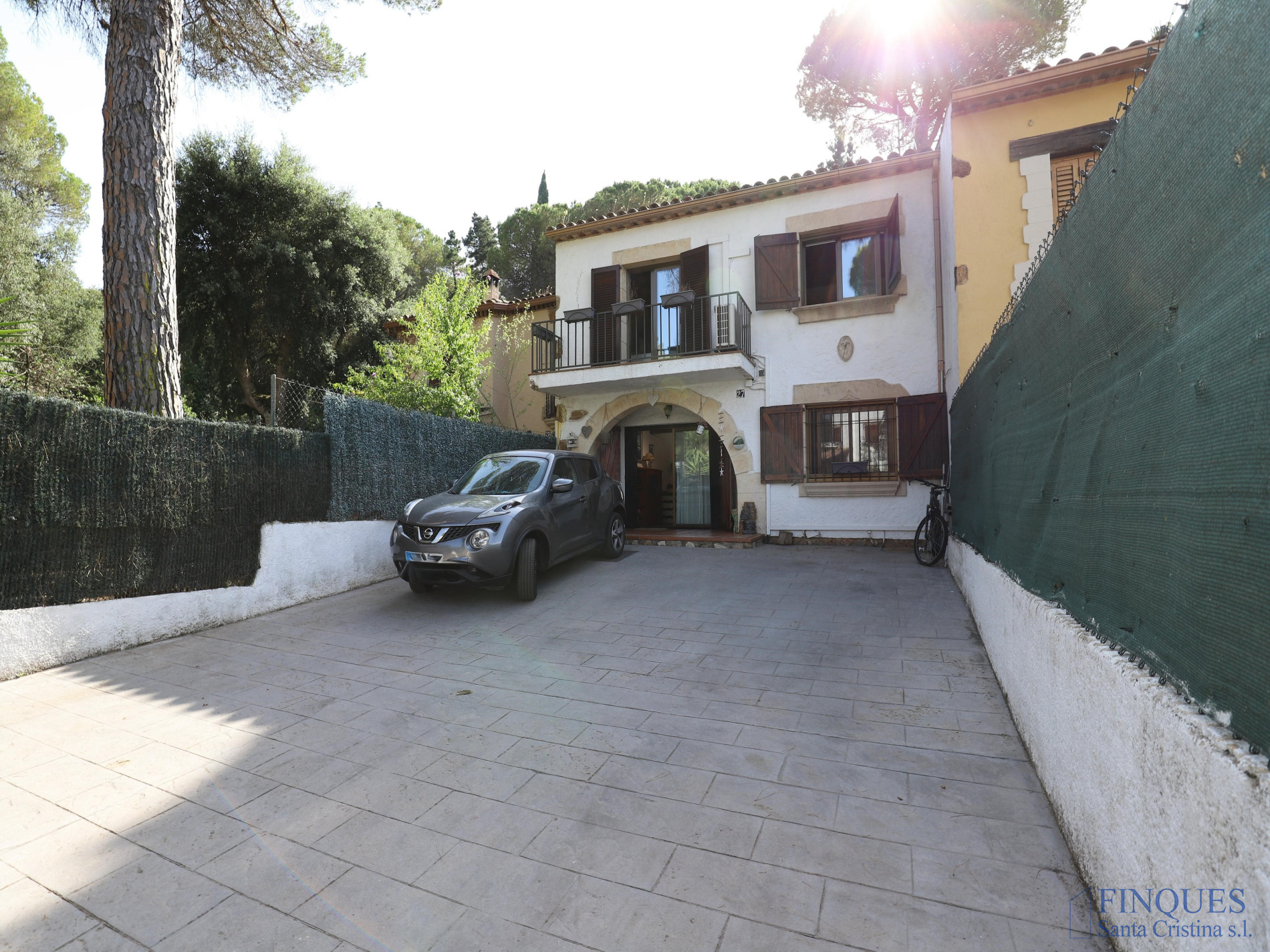 Santa Cristina d'Aro, Urbanización Golf Costa Brava. Casa adosada totalmente reformada distribuida en dos plantas y ubicada en una calle sin salida. Planta principal compuesta de amplio salón comedor con chimenea, cocina independiente, un aseo de cortesía y jardín en la parte trasera. La planta primera cuenta con dos habitaciones dobles con armarios de pared y un baño completo con plato de ducha. La propiedad cuenta con calefacción eléctrica por radiadores, ventanas de aluminio con doble acristalamiento y espacio de aparcamiento exterior para varios vehículos.