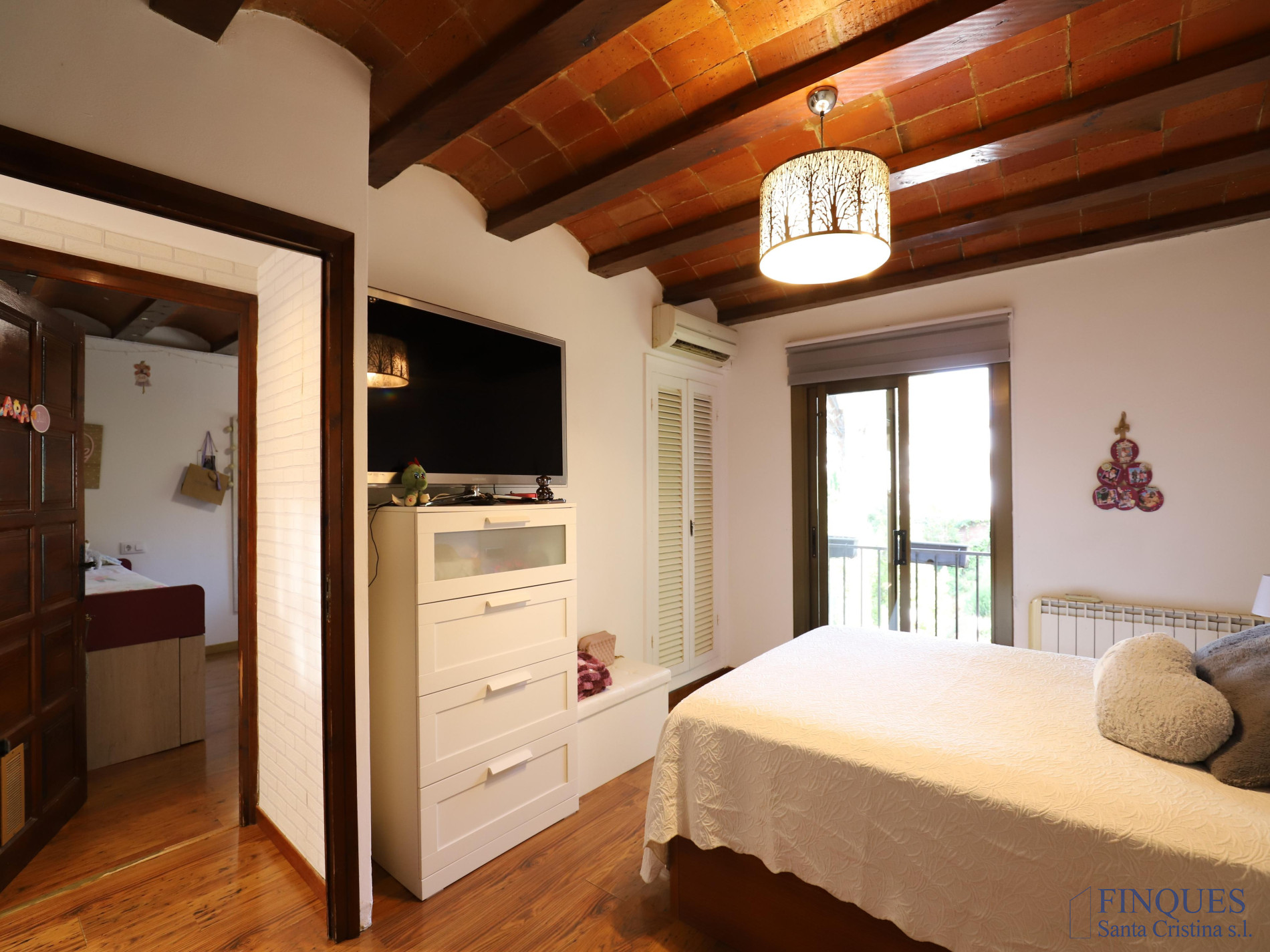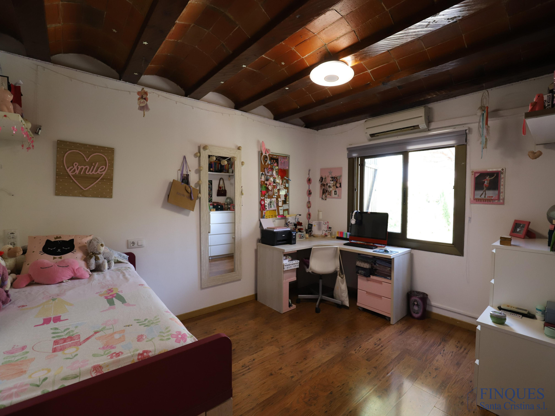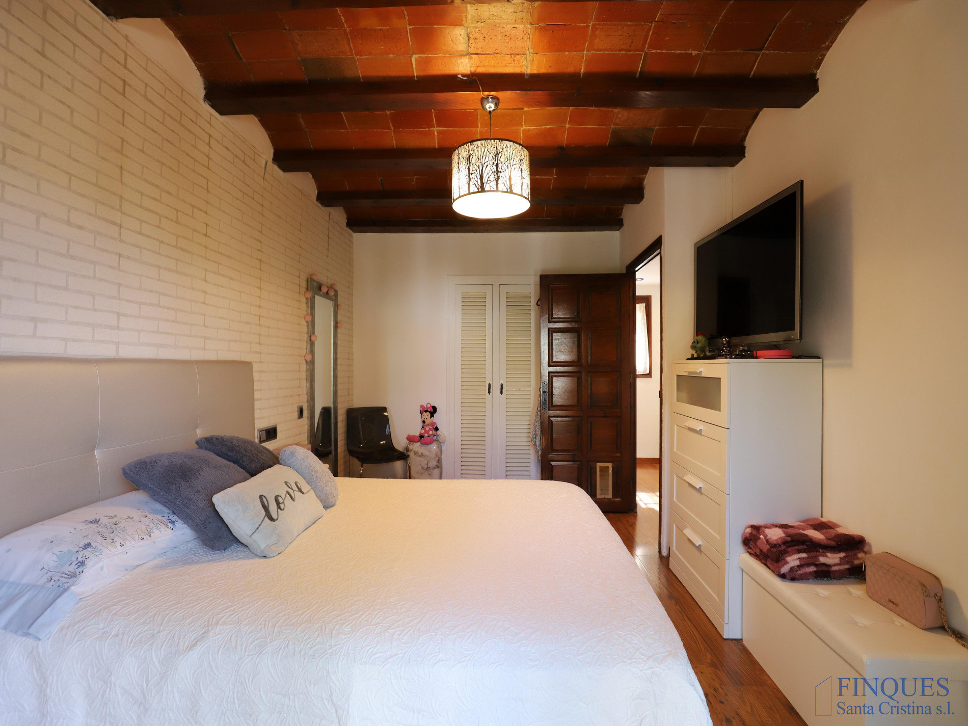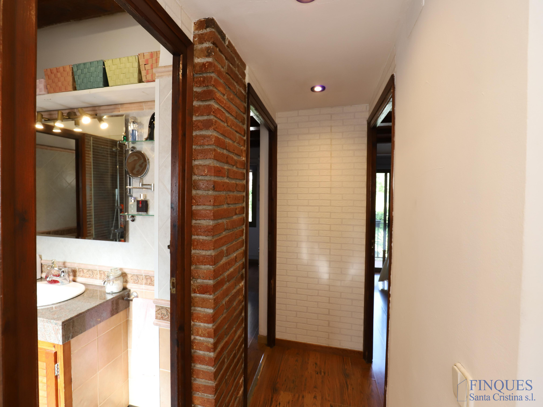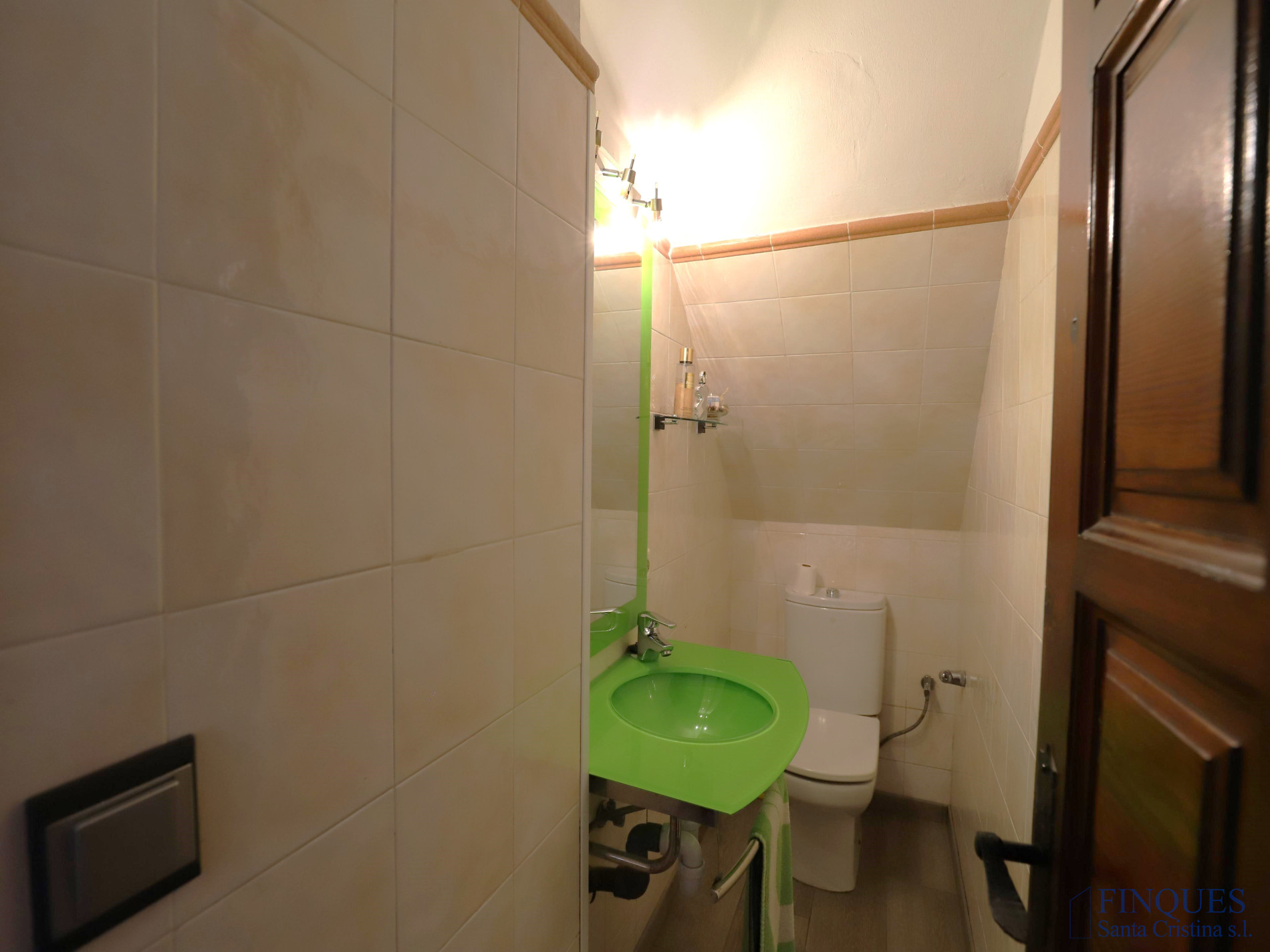 Santa Cristina d'Aro, Urbanización Golf Costa Brava. Casa adosada totalmente reformada distribuida en dos plantas y ubicada en una calle sin salida. Planta principal compuesta de amplio salón comedor con chimenea, cocina independiente, un aseo de cortesía y jardín en la parte trasera. La planta primera cuenta con dos habitaciones dobles con armarios de pared y un baño completo con plato de ducha. La propiedad cuenta con calefacción eléctrica por radiadores, ventanas de aluminio con doble acristalamiento y espacio de aparcamiento exterior para varios vehículos.