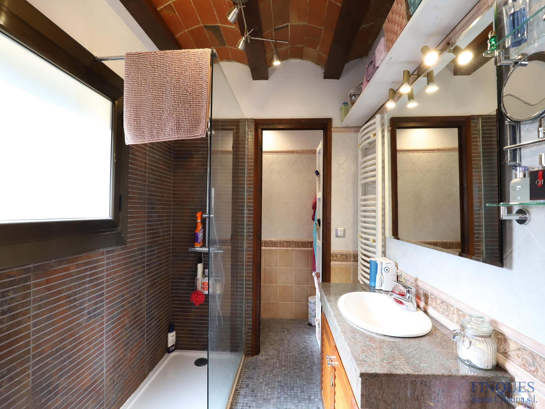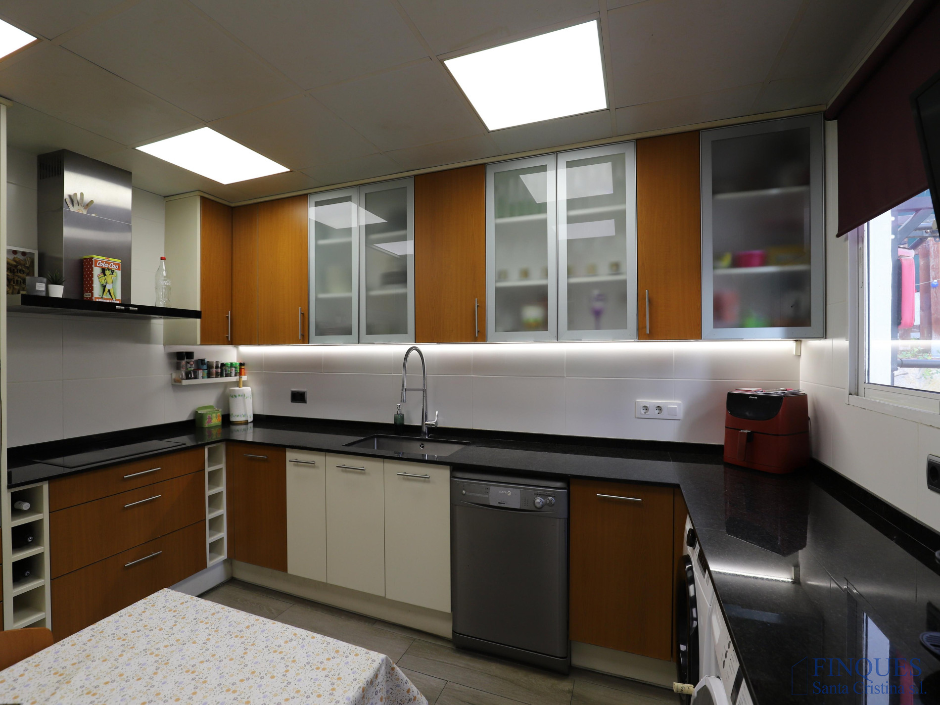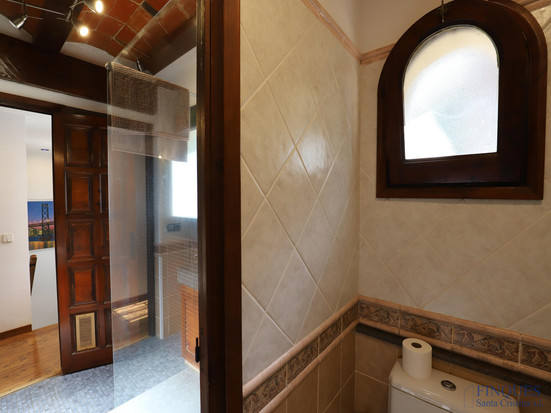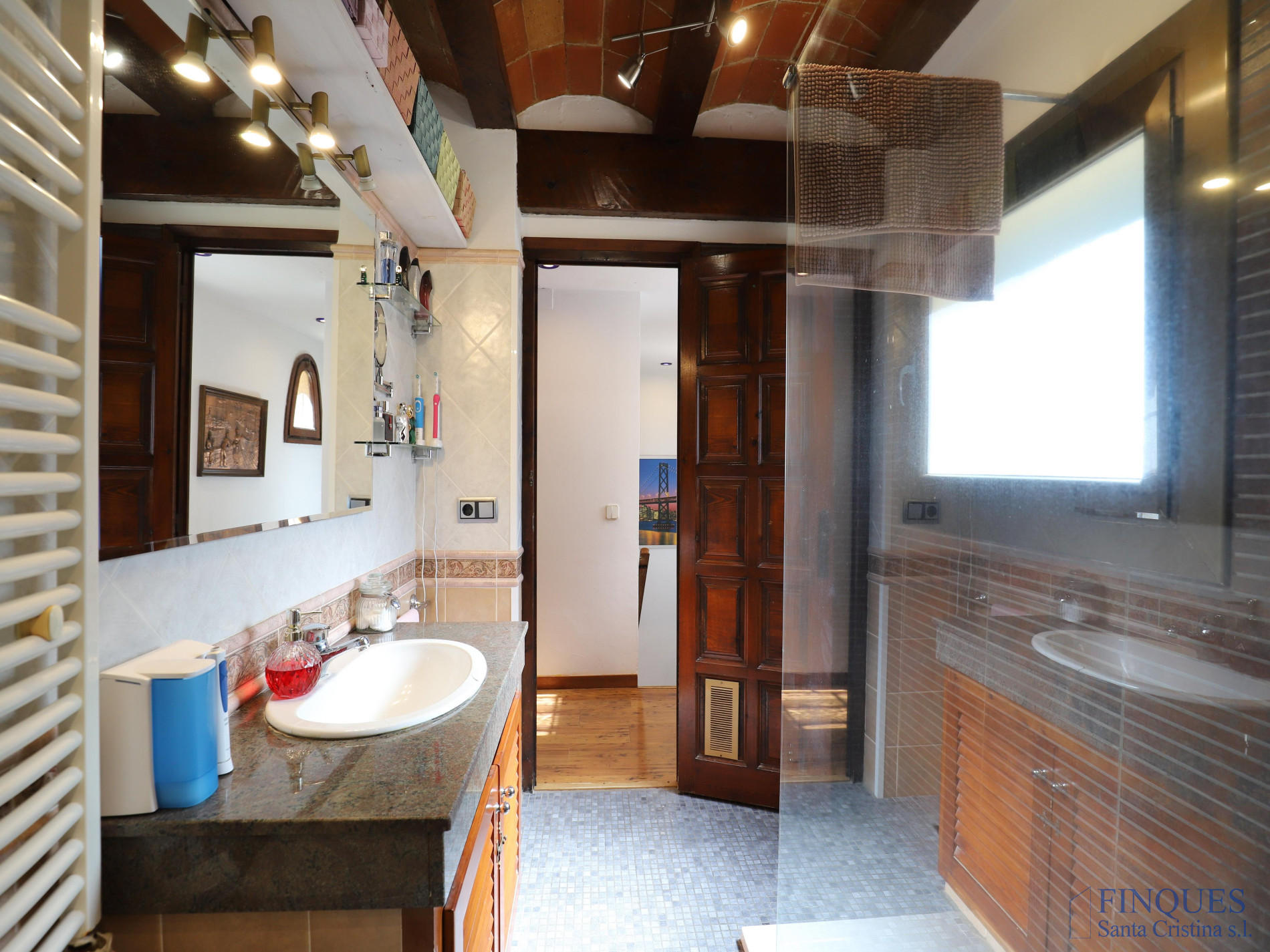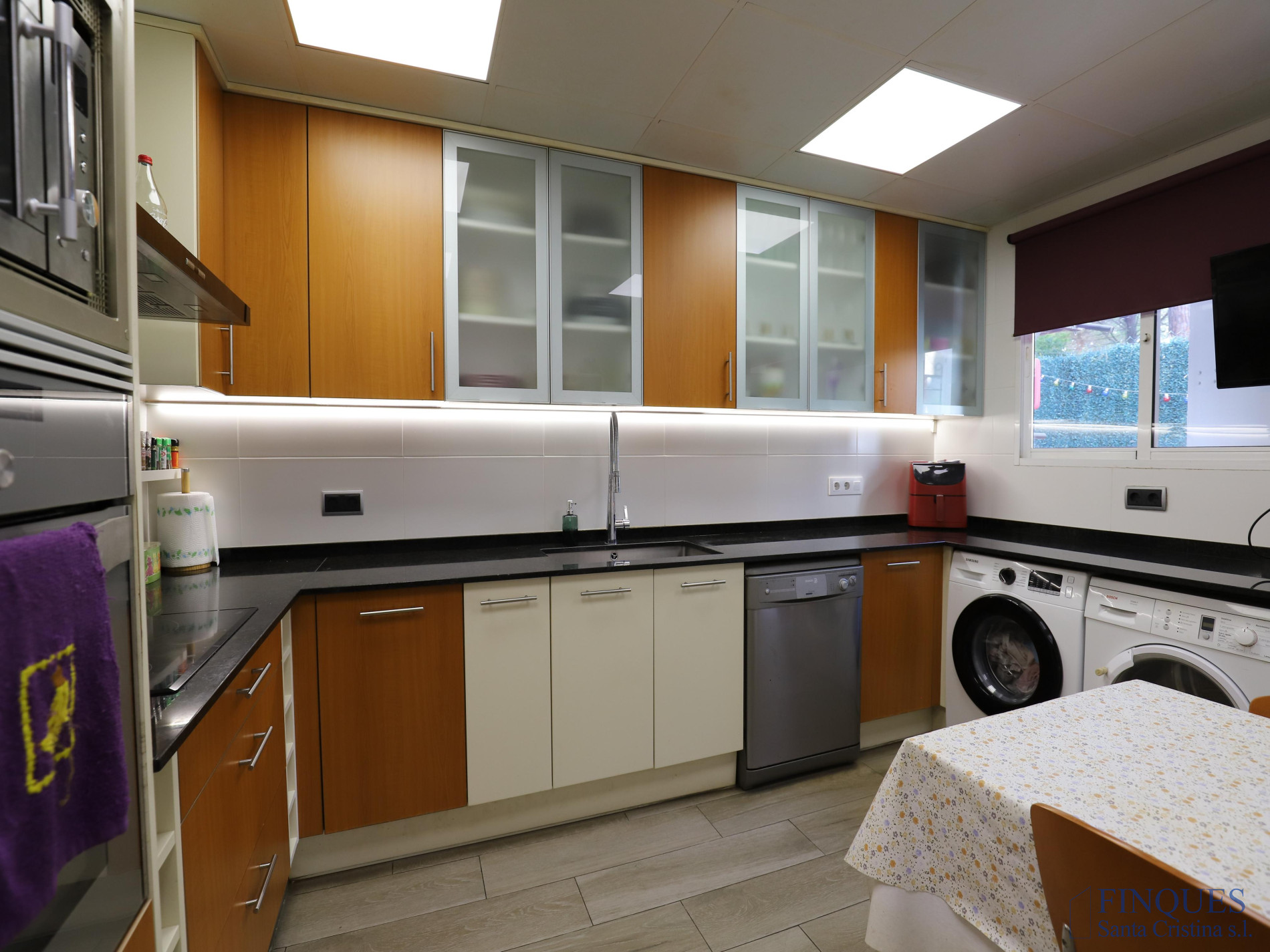 Santa Cristina d'Aro, Urbanización Golf Costa Brava. Casa adosada totalmente reformada distribuida en dos plantas y ubicada en una calle sin salida. Planta principal compuesta de amplio salón comedor con chimenea, cocina independiente, un aseo de cortesía y jardín en la parte trasera. La planta primera cuenta con dos habitaciones dobles con armarios de pared y un baño completo con plato de ducha. La propiedad cuenta con calefacción eléctrica por radiadores, ventanas de aluminio con doble acristalamiento y espacio de aparcamiento exterior para varios vehículos.