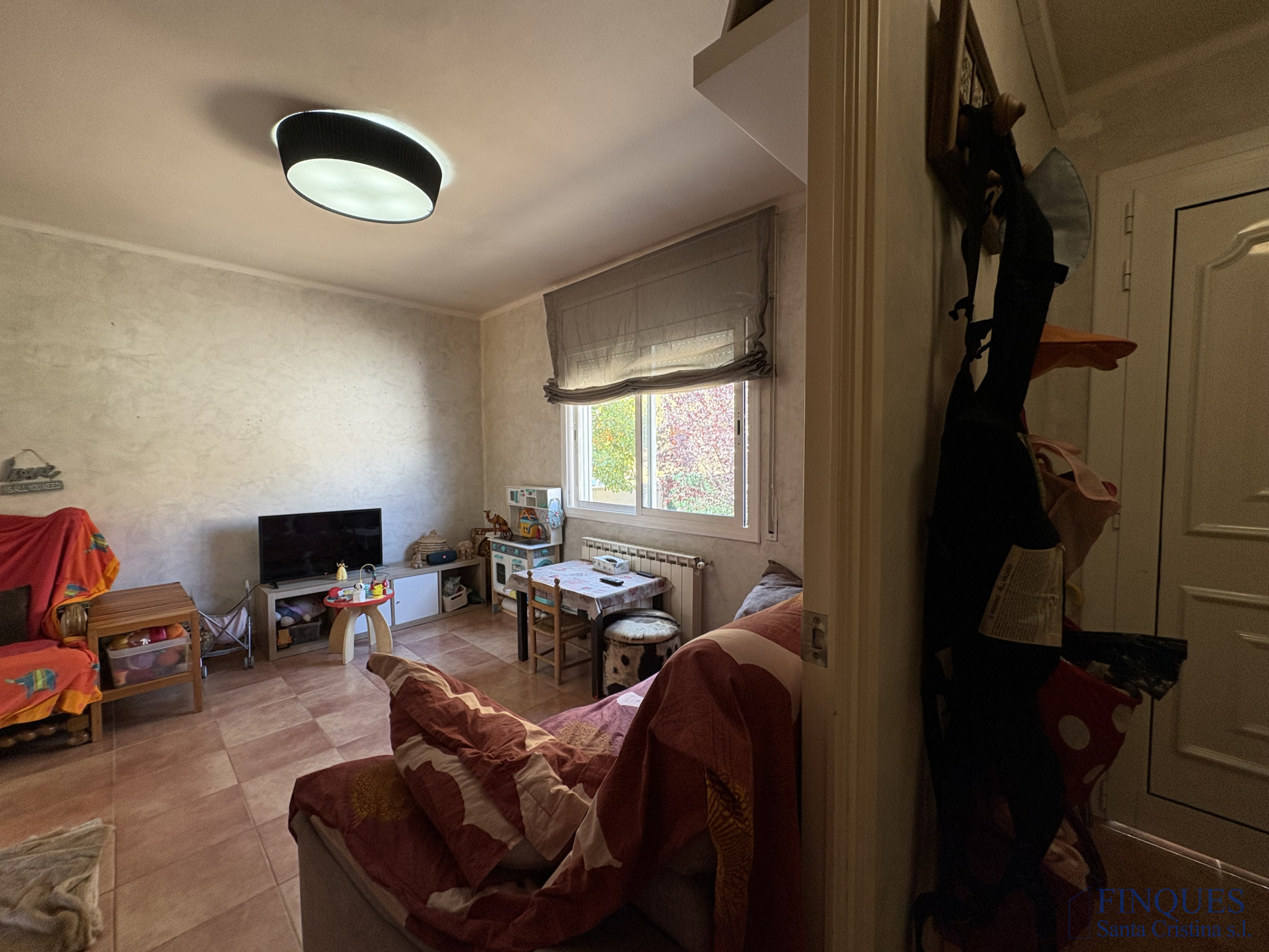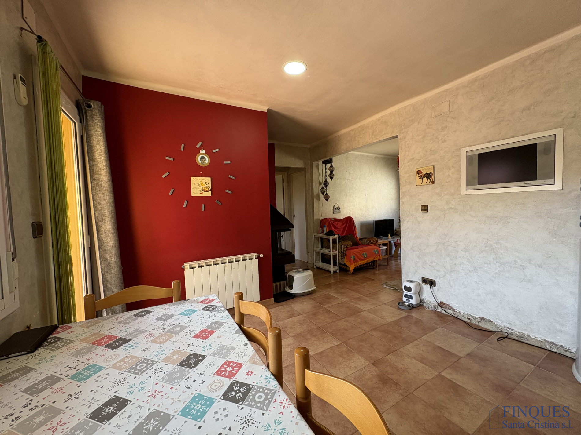 Santa Cristina d'Aro, Zona Centro. Casa adosada distribuida toda en una sola planta. Al acceder, encontramos un pequeño jardín frontal que da paso al recibidor, seguido del salón-comedor con cocina abierta y chimenea. La vivienda dispone de dos habitaciones dobles y un baño completo.