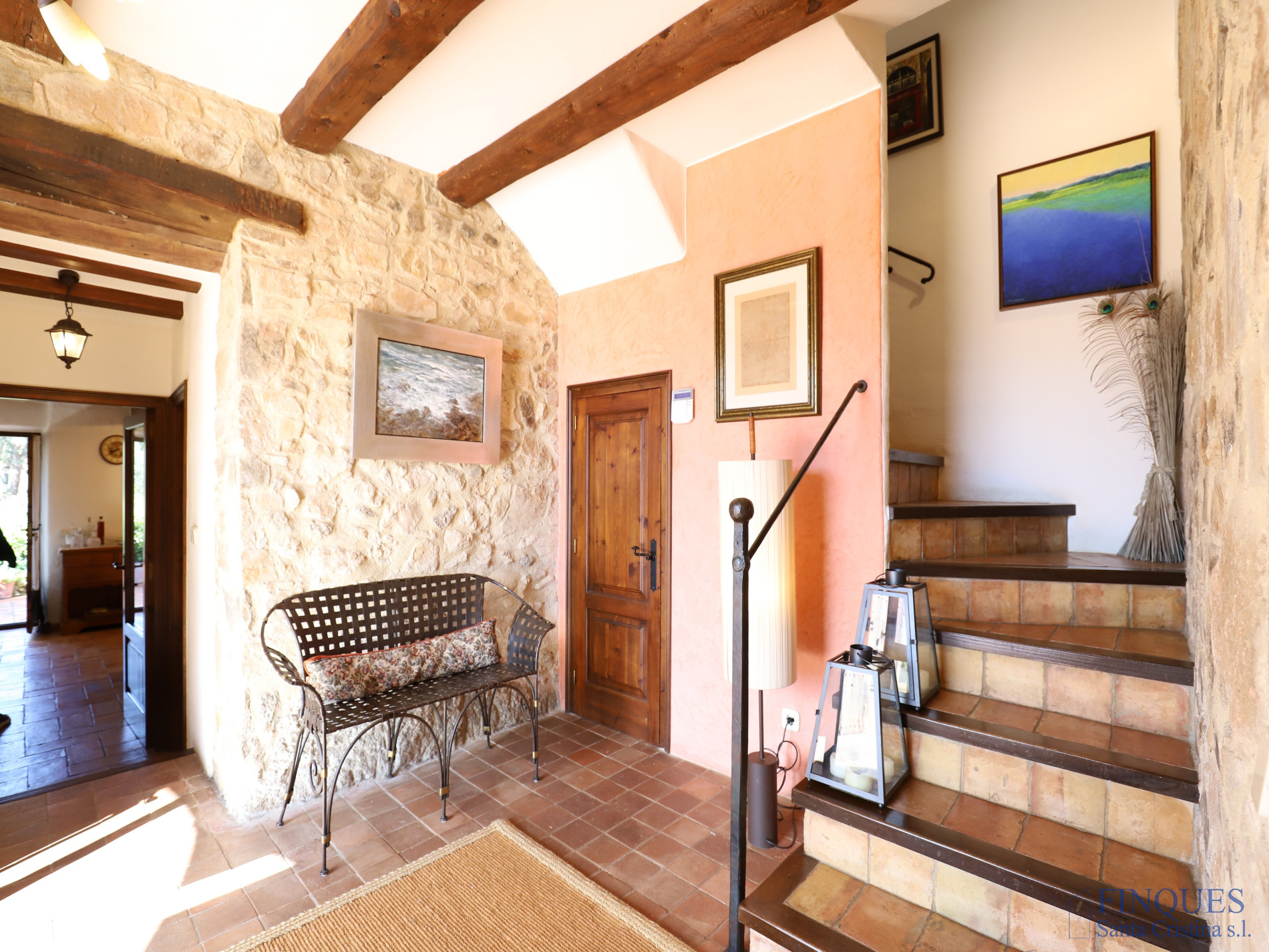 Santa Cristina d’Aro – Zona Centro. En una de las mejores zonas residenciales de la Costa Brava central encontramos esta exclusiva finca de estilo masía, que conserva todo el encanto catalán y mediterráneo, con paredes de piedra originales y techos con vigas de madera. Es una vivienda que por sus características, resulta muy confortable y gracias a sus numerosas aperturas, ofrece una gran luminosidad en todas las estancias.