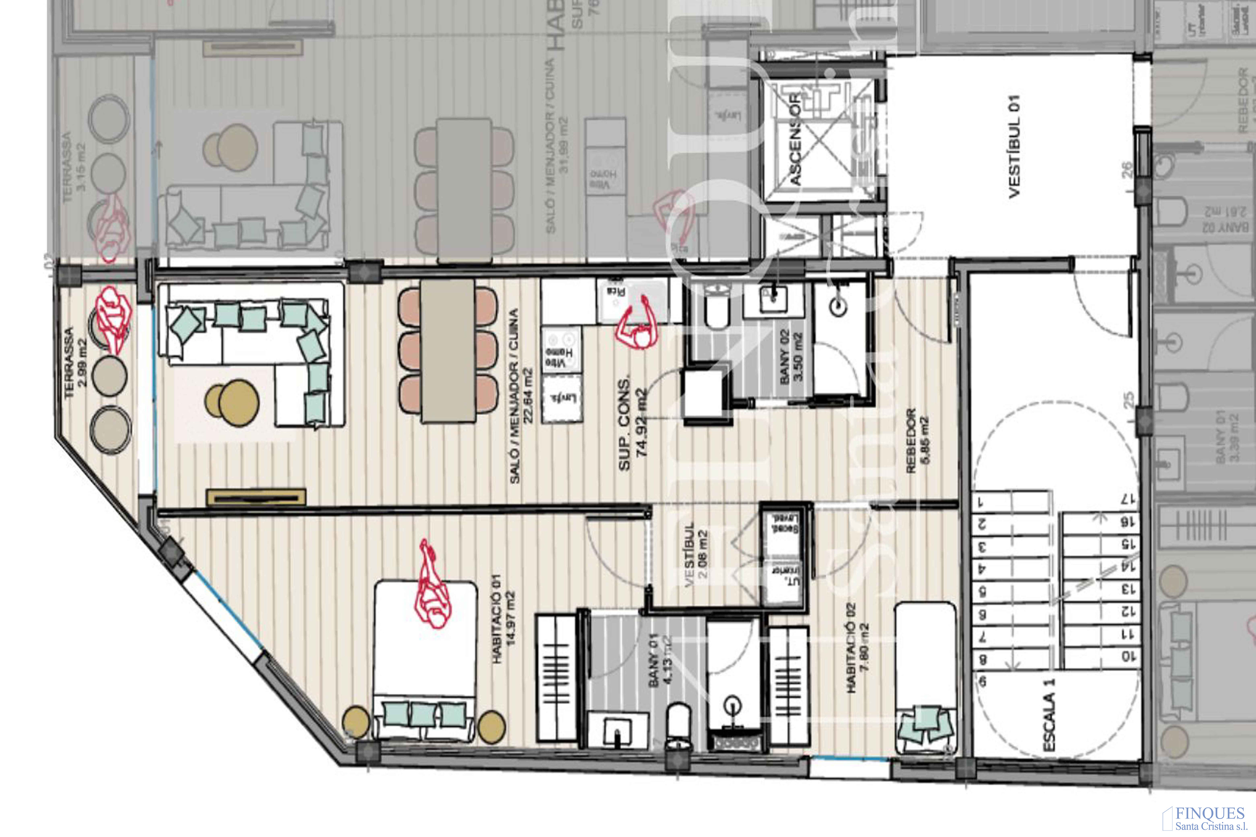Este piso nuevo en Santa Cristina d’Aro / Costa Brava dispone de 2 habitaciones, perfectas tanto para parejas como para pequeños núcleos familiares o para habilitar un espacio de teletrabajo. Se trata de un inmueble de nueva construcción pensado para aprovechar al máximo cada metro cuadrado con una distribución práctica y eficiente.
