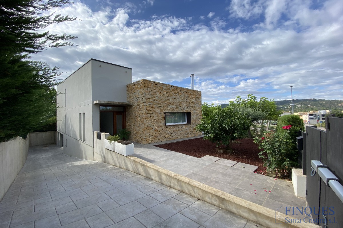 Santa Cristina d’Aro – Centre-ville. Maison au design architectural moderne, distribuée sur trois niveaux.