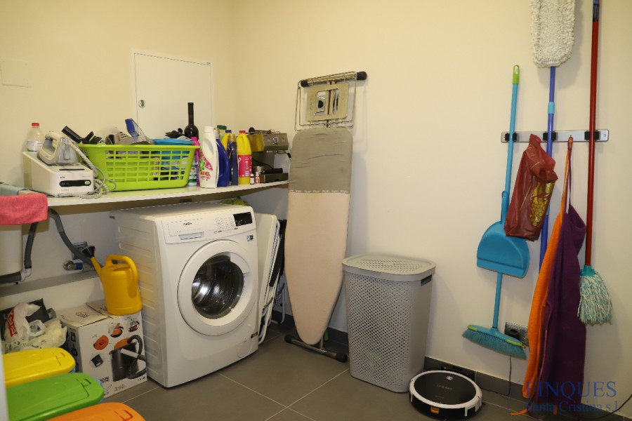 Au rez-de-chaussée, on trouve un séjour-salle à manger lumineux avec accès direct à une grande terrasse et au jardin, une cuisine indépendante avec sortie sur une autre terrasse communiquant avec l’extérieur, un espace buanderie, deux chambres simples, une suite principale avec salle de bain complète, une deuxième salle de bain complète et un dressing.
